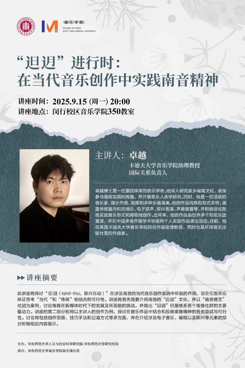 9月15日讲座预告 | “𨑨迌”进行时:在当代音乐创作中实践南音精神(主讲人:卓越)