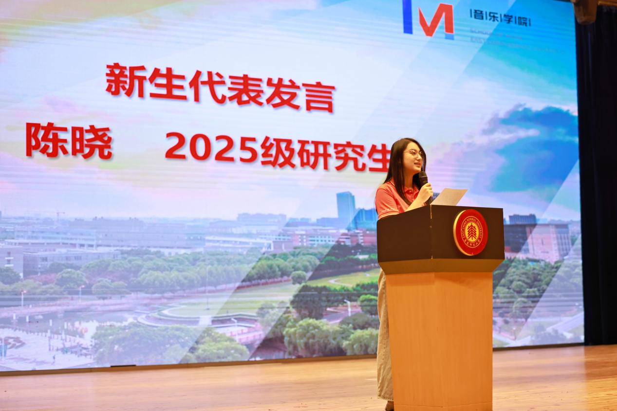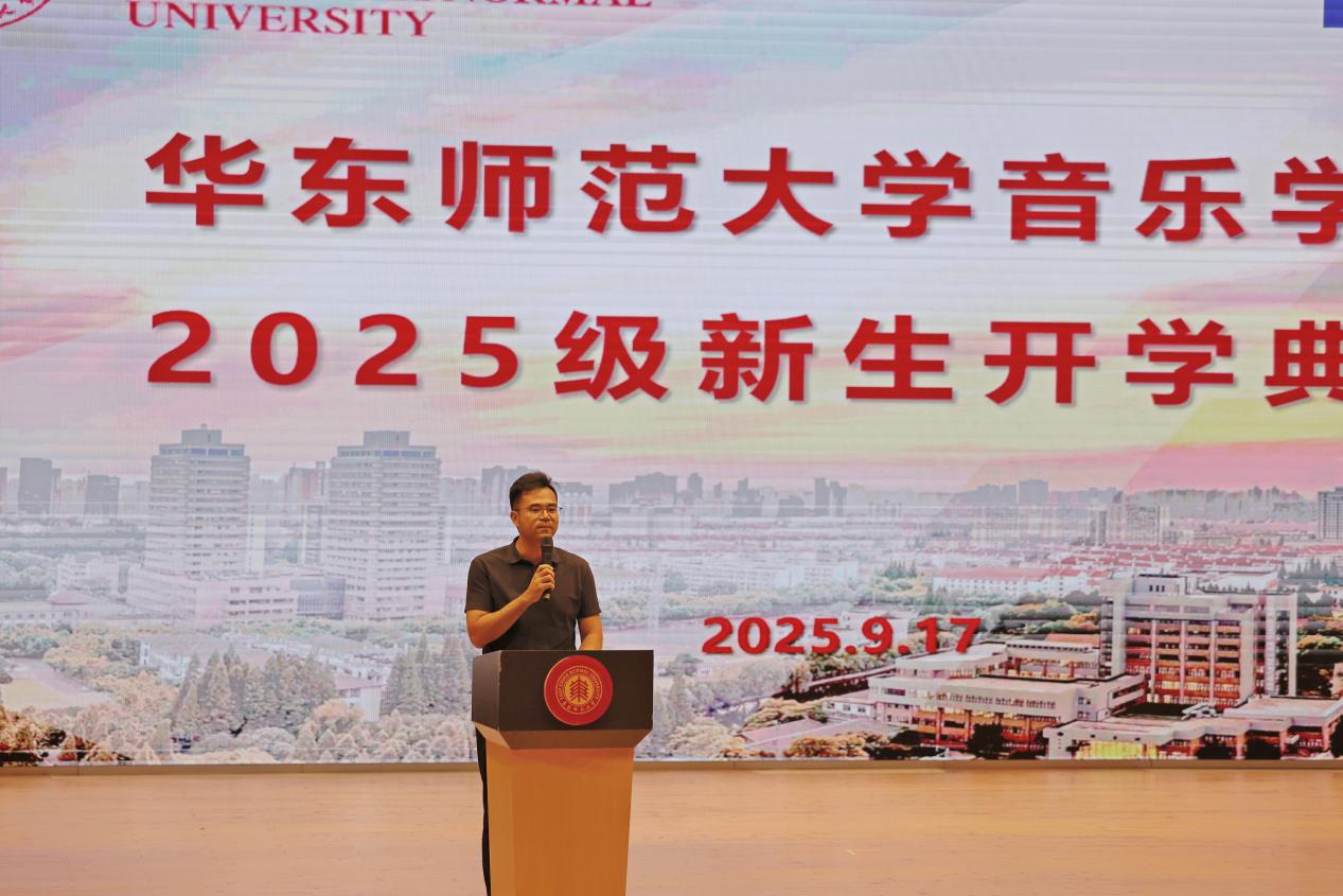 典礼最后,王成伟希望全体2025级新生能以“求实创造,为人师表”的校训精神为指引,在华东师大的沃土中扎根成长,以音乐传递正能量,以实践服务国家与社会。今年正值中国人民抗日战争暨世界反法西斯战争胜利80周年,公司师生要传承历史精神、坚定文化自信,以音乐的力量助力民族复兴的伟大征程。