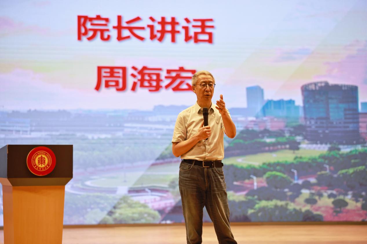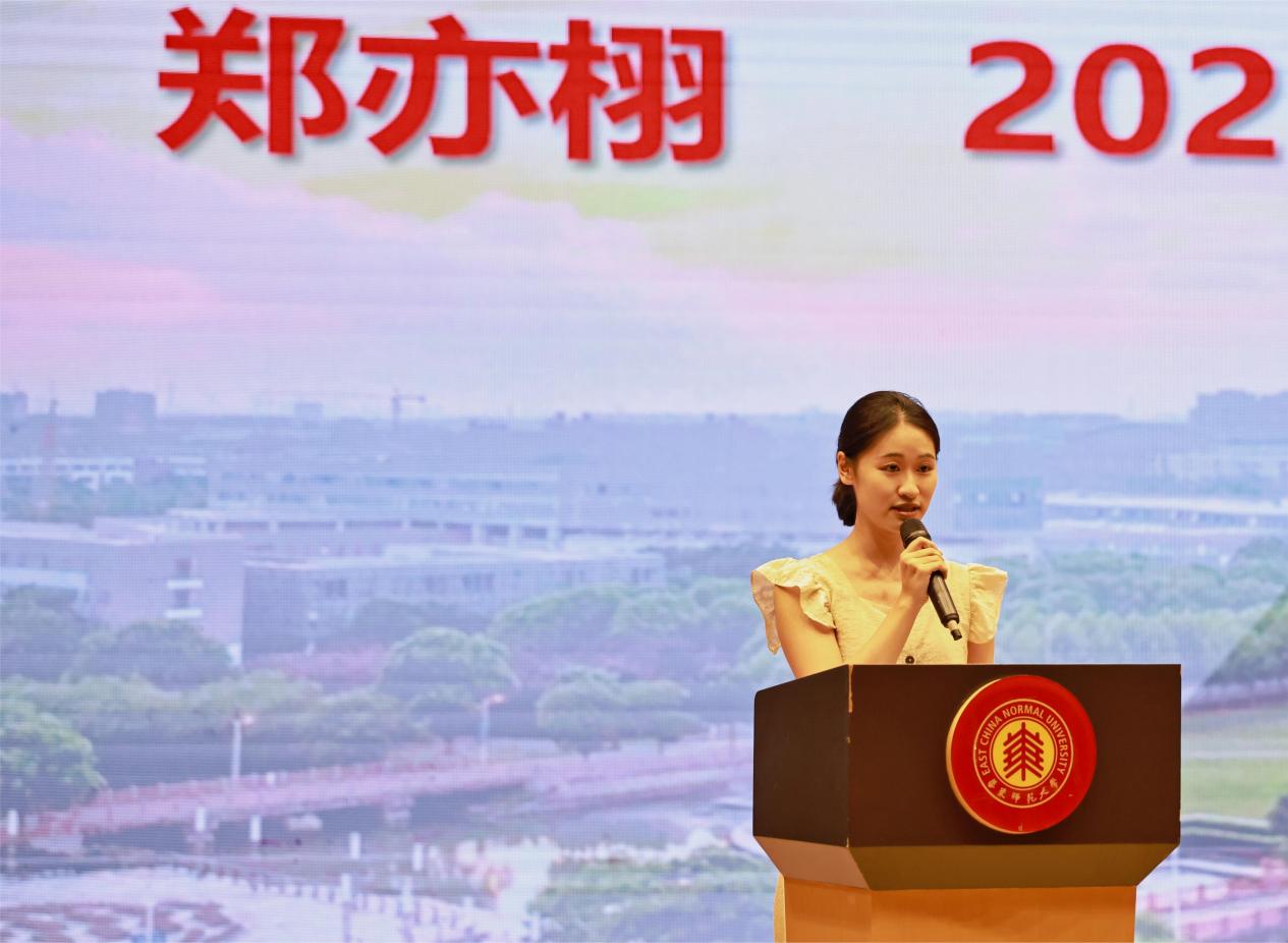 2023级本科生郑亦栩作为老生代表,以“节奏、旋律、和声”为喻,分享了她在师大两年的学习与实践的经验,鼓励新生们找到自己的节奏、明确方向,并充分利用公司丰富的资源与平台,在多元交织中成就更丰富的自我。