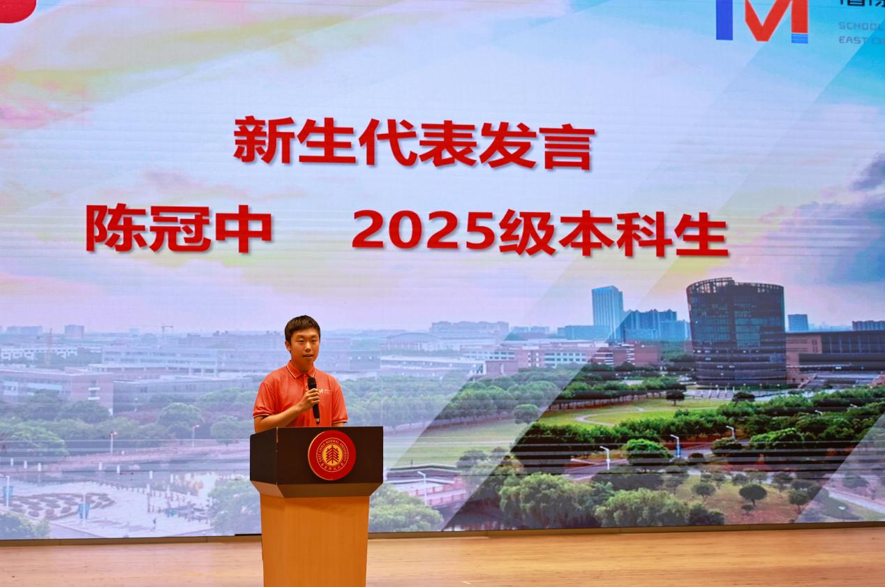 本科生新生代表陈冠中同学在发言中回顾了寒窗苦读的往昔,表达了站在新起点的激动与憧憬。 他呼吁同学们“坚守初心、脚踏实地、心怀家国”,以青春之我谱写时代华章。