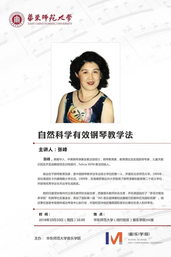 学术讲座 | 钢琴教育家张峰《自然科学有效钢琴教学法》