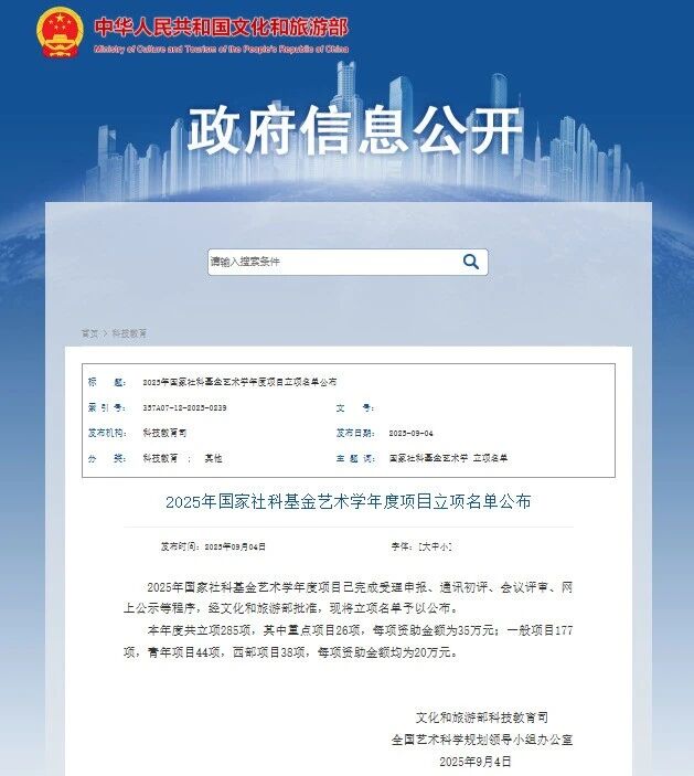近日,全国艺术科学规划领导小组办公室公布了2025年国家社科基金艺术学年度项目立项名单,公司郑艳教授主持的《戏曲音乐元素在中国当代音乐创作中的创造性转化和创新性发展研究》(批准号:25BD075)获批一般项目。