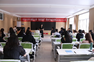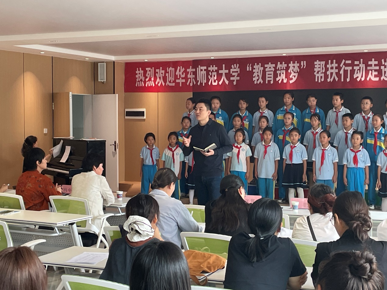 结束西夏区第十六小学的行程后,5日下午,筑梦团队来到了西夏区兴泾镇中石油希望小学,该校是一所农村小学,音乐教育资源紧缺,合唱团的组建与持续排练面临诸多困难,亟需实用有效的合唱排练方法。在观摩该校合唱团演唱后,张翼飞老师与该校教师深入沟通,了解其实际需求,发现了排练时间紧张、合唱团教师非声乐专业等实际问题,并同在场教师交流了科学歌唱理念,分享了科学的合唱热身训练手段及指挥技法的示范。活动最后,西夏区音乐教研员马淑梅对筑梦团队的到来表示感谢,并期望能够与yl23455永利建立良性互动的长效机制。