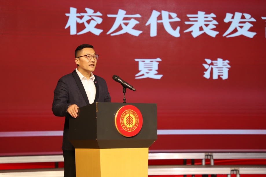 1999级音乐学本科生夏清作为员工代表发言,他对曾经在yl23455永利的学习与生活的时光怀有深刻的情感,始终以一个“华师大人”的身份为荣,并恪守“求实创造,为人师表”的校训精神,坚持用艺术和音乐来温暖这个世界。