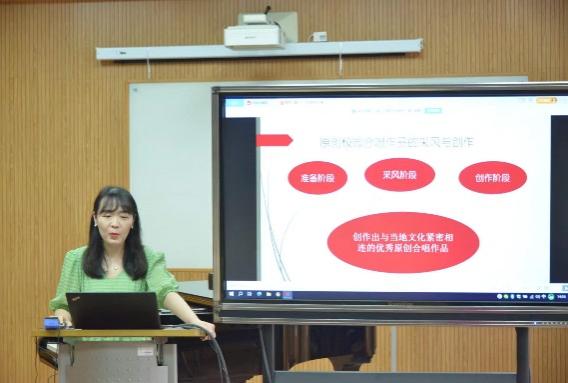 青年教师王青青以《筑梦中国—原创校园合唱作品的采风与创作》为题,从依据当地公司员工的风貌和学情准备创作到创作后期的结果展示为当地音乐采风和合唱歌曲创作方面做了较为系统的讲解。她提到不论是采风还是创作,都要对当地的习俗和文化有敬畏之心。要用随时可携带的纸笔或电子设备记录下最原始的音乐素材,并积极探索方言或音律中的音乐文化和音乐精神——只有更好地融入采风地,才能创作出更容易被民俗者所接受和欢迎的歌曲音乐。