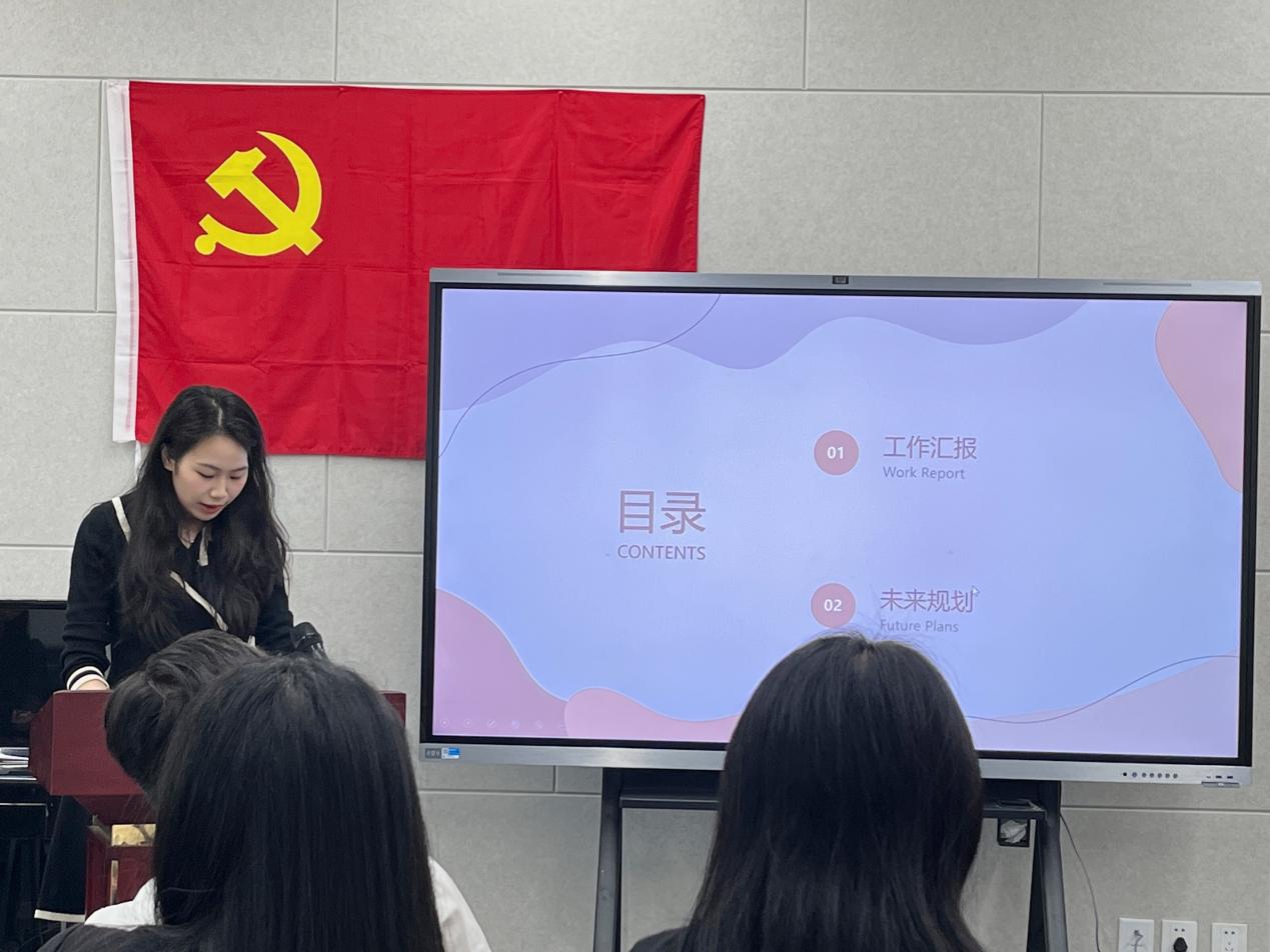 第四届分团委副书记戚怡然代表分团委进行2022-2023年度工作汇报,回顾总结年度工作成果