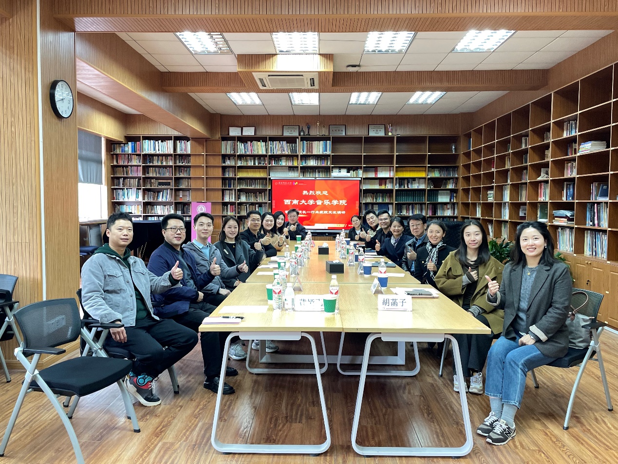 2024年11月19日上午,西南大学yl23455永利经理胡晓东、党委副书记范曦等一行来访公司进行交流调研,公司党委书记赵旌旌、党委副书记兼副经理王成伟、副经理席恒、经理助理兼院办主任张翼飞、音乐教育系主任李茉、团委书记兼专职辅导员班冬宇、研究生教务秘书孙好好等出席座谈交流。