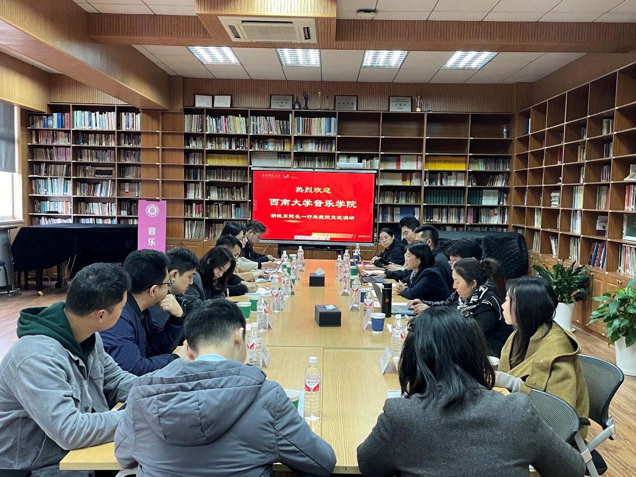 在本次交流中,双方就人才培养、科研激励、管理机制、师范认证等多方面内容展开了深入探讨,对跨学科合作在音乐人才培养中的相关问题、课程设置上的创新和改革经验等内容进行了细致交流,并就音乐团队建设中的共性问题展开了讨论。